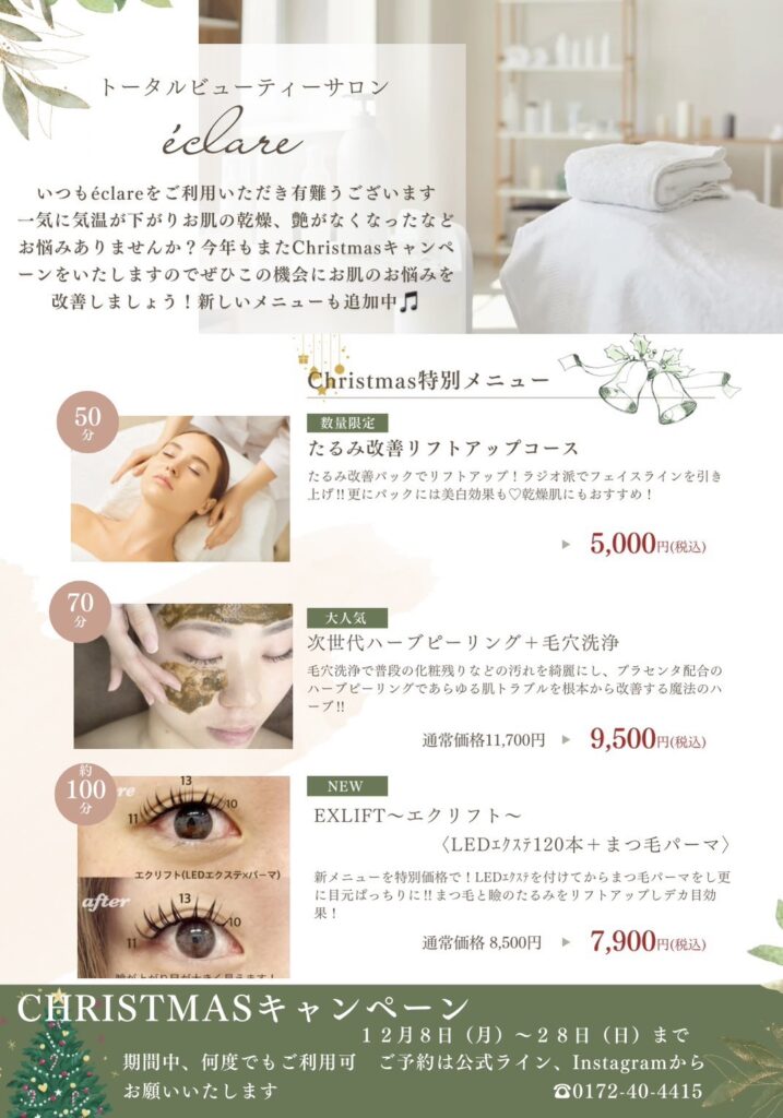 毎年大人気のクリスマスキャンペーン☆今年一年頑張った自分へのご褒美に、、、